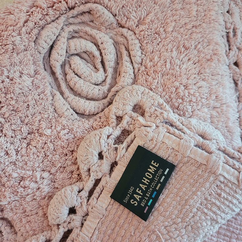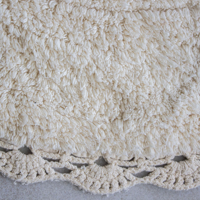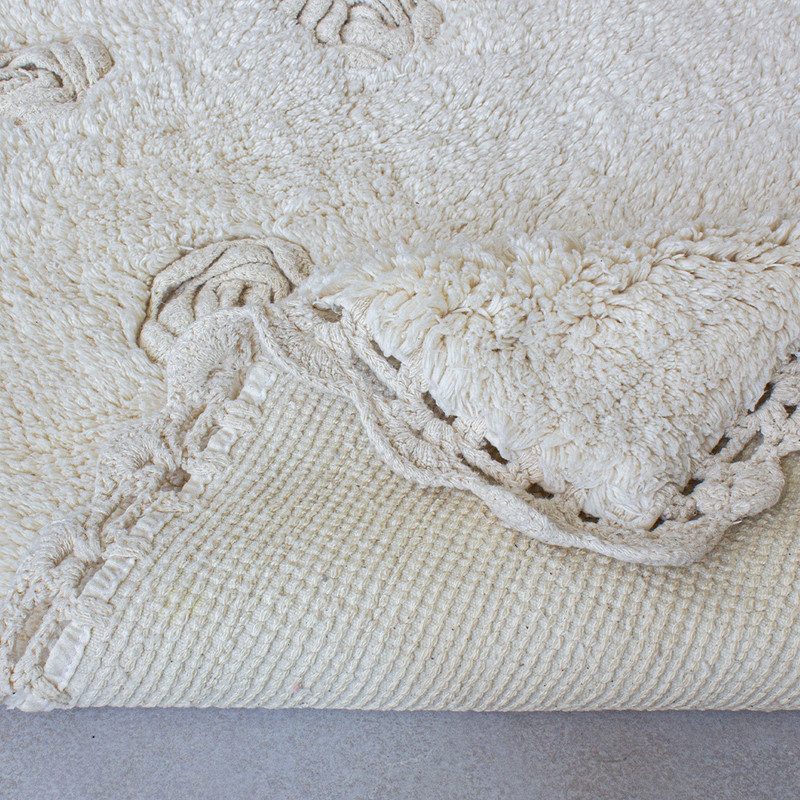 دور این پادری ماتیلدا به صورت دستی، بافت شده است. به همین دلیل ممکن است ابعاد آن ها کمی با یکدیگر متفاوت باشد. جنس این پادری 100% پنبه است و بسیار نرم و لطیف می باشد. علاوه بر آن در قسمت زیره این پادری ها از لاتکس استفاده شده است تا از لغزش آن ها جلوگیری کرده و پادری روی زمین، تکان نخورد. ابعاد پادری ماتیلدا 50×80 (5±) سانتی متر می باشد.