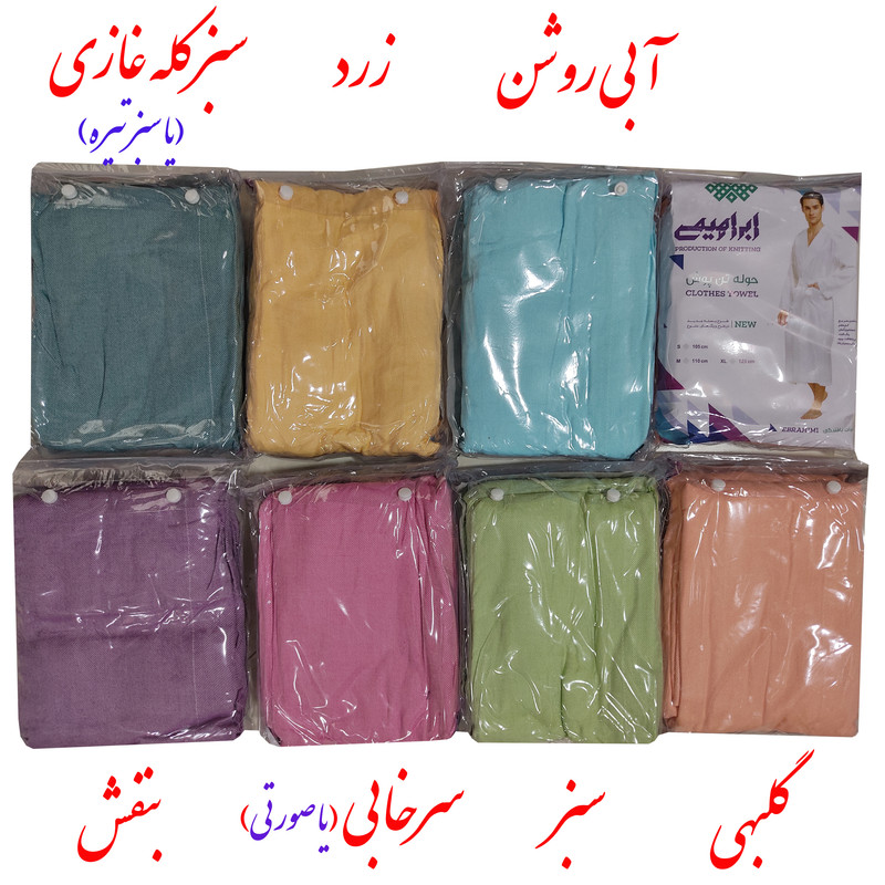 حوله پالتویی 100 درصد نخ ویسکوز برند اصلی ابراهیمی یزد طرح ساده و رنگ های جذاب نرم و لطیف و کم حجم و سبک ولی با آبگیری فوق تصور و با کیفیت عالی