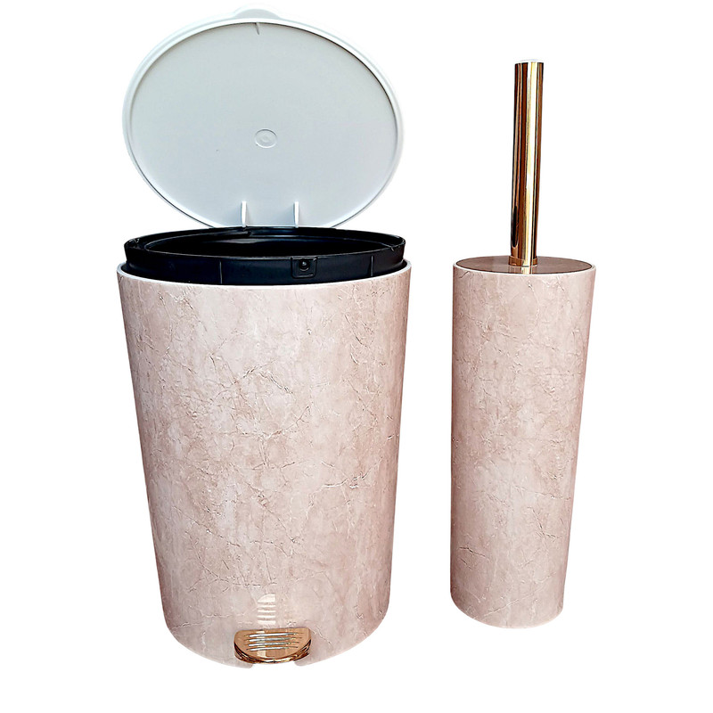این ست شامل سطل و فرچه میباشد که فضای سطل این ست ۴.۵ لیتر بوده و سطل دوجداره ( شامل سطل دوم دورن سطل اصلی)میباشد . دستهی برس و پدال سطل طلایی میباشد . طرح روی ست با ست ماربل متفاوت بوده و خاص تر میباشد .