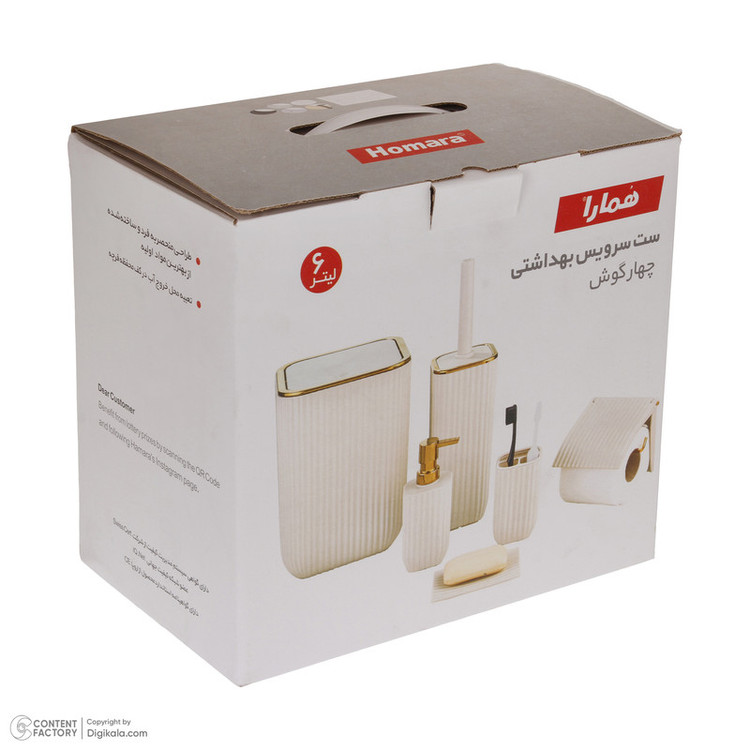 - دارای سطل به ابعاد 18×17×26 سانتی متر و وزن 705 گرم - دارای توالت شور به ابعاد 9×40×9 سانتی متر و وزن 355 گرم - جای مایع دستشویی به ابعاد 7×19×7 سانتی متر - جای دستمال کاغذی به ابعاد 13×13×10 سانتی متر - جای مسواک به ابعاد 7×11×7 سانتی متر