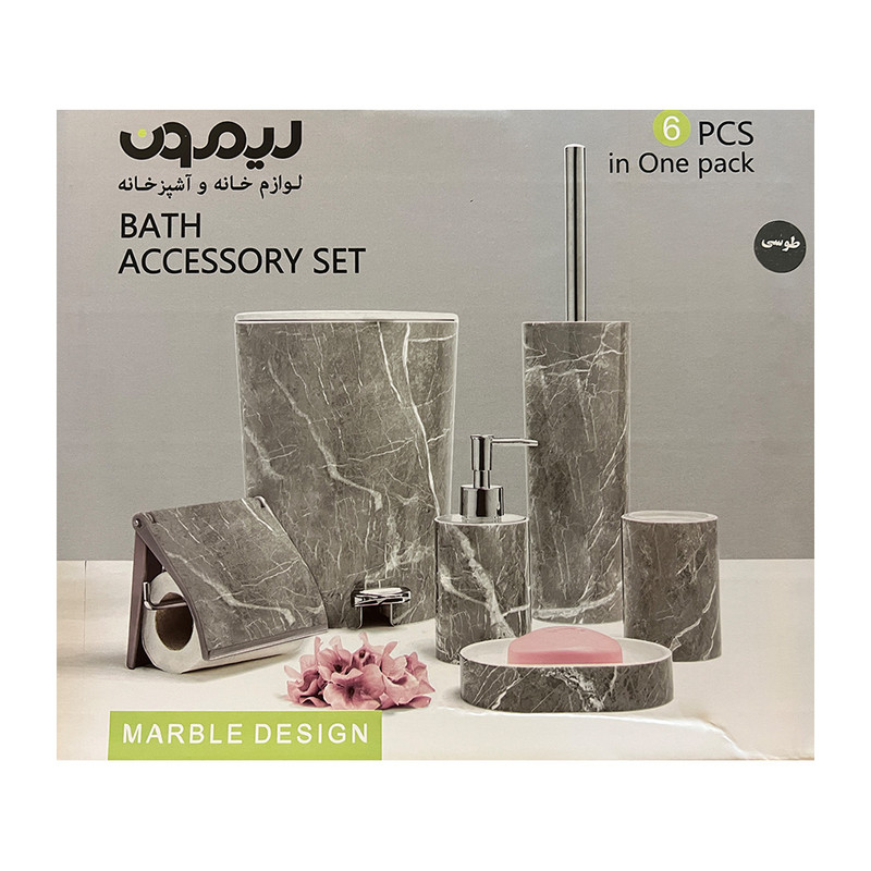 سایر توضیحات: سطل، فرچه، جا مسواکی، جا صابونی، جا دستمالی، جا مایعی
