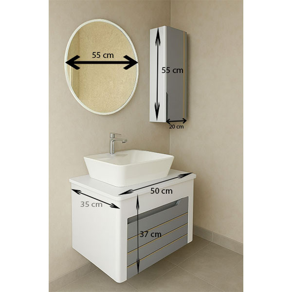 ابعاد کابین طول۵۰ عرض ۳۵ و ارتفاع ۳۷ ابعاد باکس طول ۲۰ عرض ۱۰ و ارتفاع ۵۵ آینه به قطر ۵۵ سنگ روییه طول۳۶ عرض ۳۶ ارتفاع ۱۲