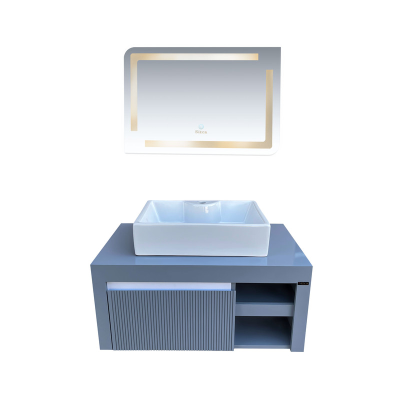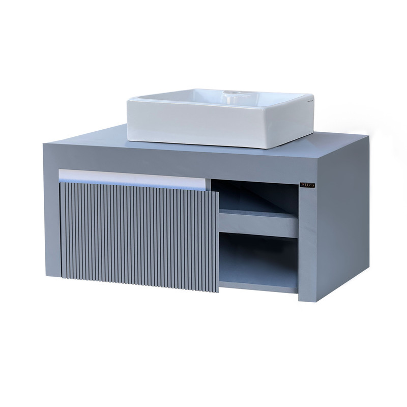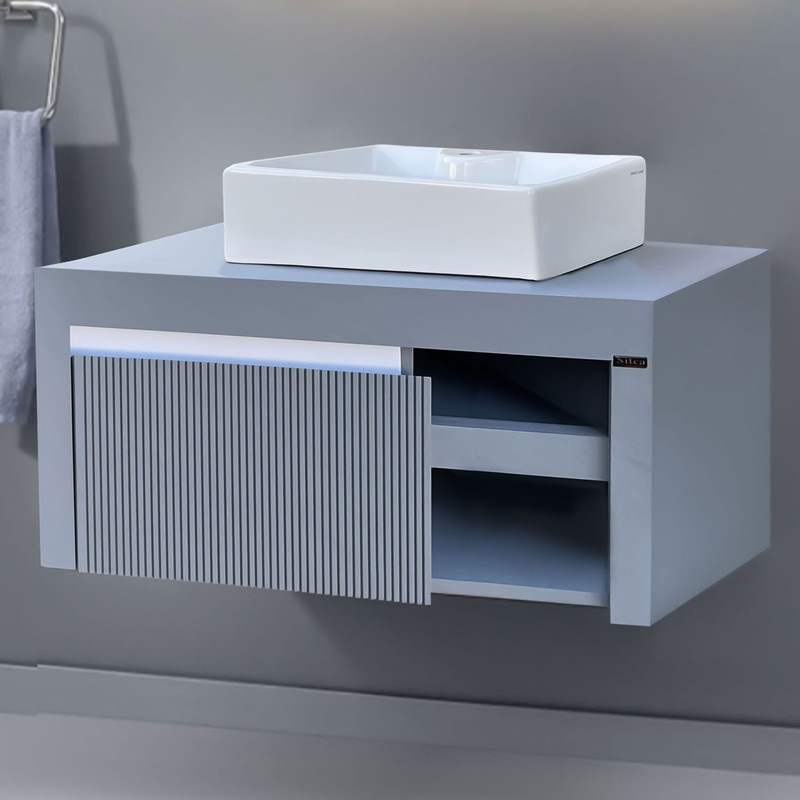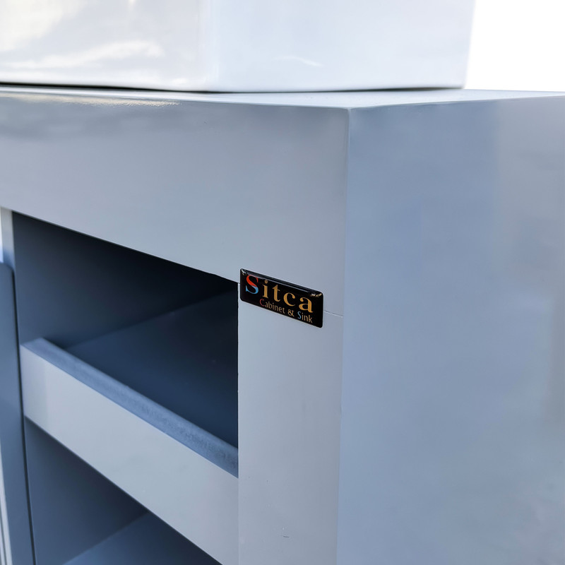 ست کابينت و روشويي سیتکا مدل EZ-sib007/80روکار به رنگ سیلور می باشد که توسط برند سيتکا با سالها تجربه در ساخت سینک و کابينت روشويي هاي لوکس و استاندارد توليد شده است .اين محصول از دو قسمت ساخته شده است .قسمت کابينت آن از جنس pvc بوده و قسمت روشويي آن از جنس چینی الات لعابی مي باشد.اين نوع از روشوييها در دسته کالاهاي لوکس ساختماني قرار ميگيرند .مشخصههاي بارز اين محصولات ضدآب و ضد رطوبت بودن و تنوع رنگي بسيار بالاي آن هاست. يراق آلات اين محصول استيل بوده و در محيط مرطوب زنگ نمي زند. کاسه روشويي بصورت یک کاسه روکار می باشد .در حال حاضر پرفروش ترين کاسه روشويي هايي که مورد استقبال مردم واقع مي شوند، مدل هاي روشويي روکار و یک تیکه مي باشند .لازم به ذکر است شيرالات قابل نصب براي اين محصول هر نوع شير روشويي میباشد. اینه مورد استفاده در این محصول از اینه های نسل جدید بک لایت( چراغ دار ) با تاج لمسی جهت ایجاد روشنای اینه و زیبای بخشیدن به محیط سرویس بهداشتی می باشد .