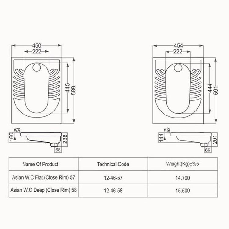 نشیمن: تخت آبریز: ریم بسته کاسه: گود