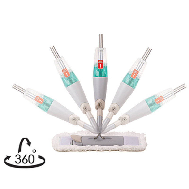 به سادگی بطری را با محلول شوینده پر کنید و در محل تعبیه شده قرار دهید و با فشردن دستگیره به صورت یکنواخت آن را اسپری کنید پد میکروفایبرکوچکترین آلودگی و گرد و غبار را جذب می کند و به دو صورت خشک و مرطوب می توان از آن استفاده کرد