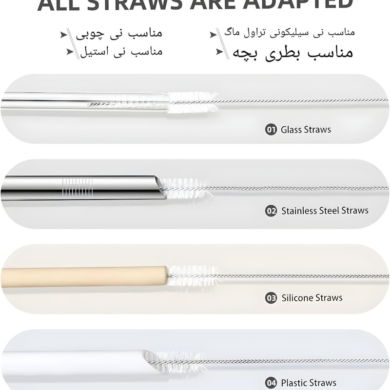 این نی شور چند منظوره، بسیار مناسب برای تمیز کردن نی های مختلف، قاشق های شربت خوری نی دار، پیپ،بطری بچه،تراول ماگ نی دار، لولهی قوری و گوشه هایی که دسترسی به آنها سخت است طراحی شده است. با استفاده از این نی شور هر فضای کوچک و غیرقابل دسترس را می توان تمیز کرد. این مدل مناسب برای نی با حداقل قطر 5 میلیمتر است؛ و با طول 20 سانتی متری برای نی های صاف و خمیده کاربرد دارد. نی های استیل قابل شستشو و قابل بازگشت به چرخه مصرف هستند و جایگزینی درست و عالی به جای نی پلاستیکی محسوب می شوند؛ استفاده همیشگی از نی استیل از تولید حجم زیادی از زباله جلوگیری میکند؛ از این رو این محصولات دوستدار محیط زیست هستند. شما می توانید با استفاده از نی شور، نی های استیل، شیشه ای,تراول ماگ،بطری بچه و ... را تمیز کنید