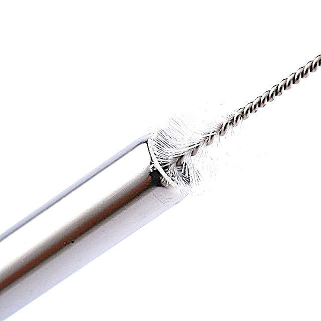 نی شور با دسته فلزی و موهای پلاستیکی طول دسته 19 سانتیمتر طول قسمت سری فرچه حدود 5 سانتیمتر مناسب نی با حداقل قطر 5 میلیمتر مناسب نی های صاف و خمیده و قاشق های نی دار