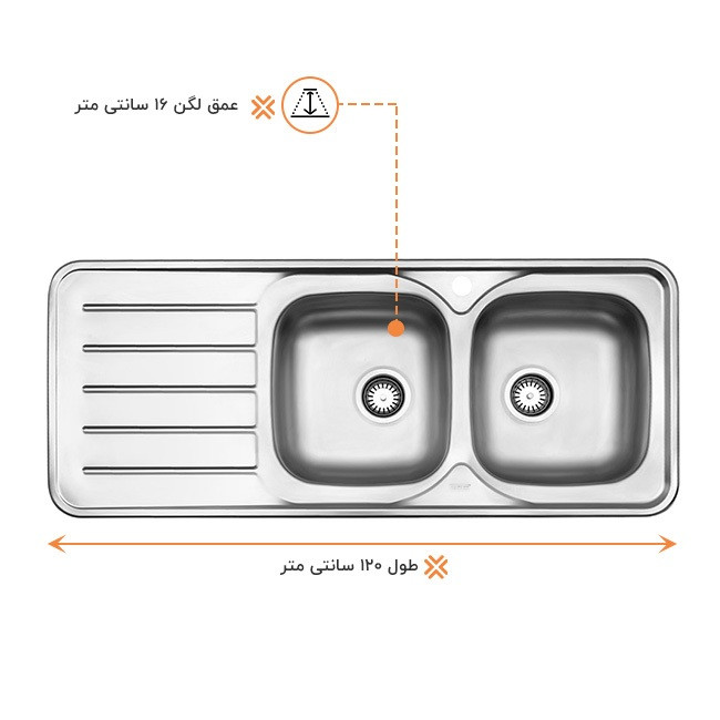سینک ظرفشویی استیل توکار دو لگنه استیل البرز مدل 221