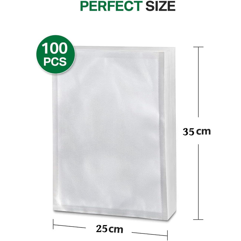 کیسه وکیوم کانالدار، به منظور وکیوم و بسته بندی مواد غذایی در غیاب اکسیژن مورد استفاده قرار می گیرند. کیسه کانال دار ( Embossed) از فیلم های پلیمری چند لایه نفوذناپذیر تهیه می شوند که به واسطه وجود میکروکانالها (Microchannel) در سطح داخلی کیسه، تخلیه هوای محبوسشده را در لابهلای مواد غذایی به طور کارآمدتری انجام میگیرد. بارزترین ویژگی این محصول که به دلیل کانال های موجود و تخلیه کامل هوا ایجاد می شود، افزایش زمان ماندگاری محصولات به دلیل خروج کامل اکسیژن و ممانعت در برابر نفوذ هوا می باشد.شامل 100 عدد کیسه وکیوم کانال دار در سایز 25 در 35 میباشد .