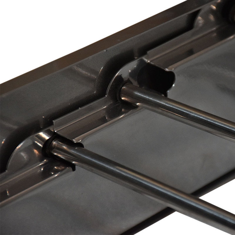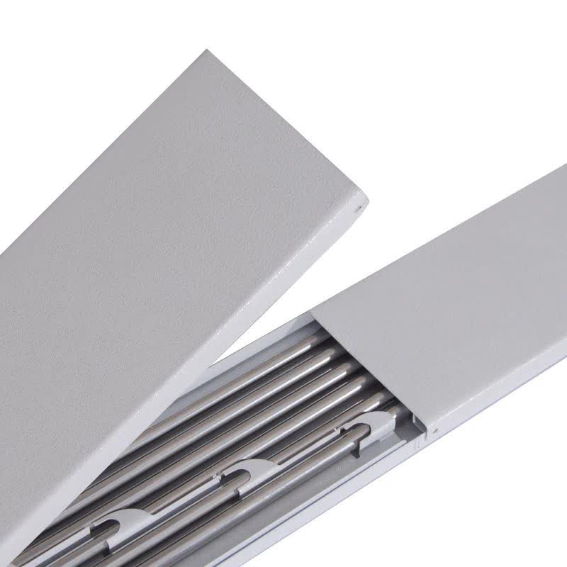 این قطعه درابعاد12سانتیمتردر85سانتیمتروبه ضخامت2سانتیمتردارای 6میله ضخیم جهت آویز لباس وتوسط 6 جای پیچ به دیوار نصب میشود و با فلز ضد التهاب و از هم پاچیدگی و رنگ فول استاتیک ضدخش باپوشش ضخیم رنگ و هر عدد داخل یک جعبه و هر 5 عدد داخل یک کارتن مادر بسته بندی میشود و مورد استفاده این قطعه : در منازل ، داخل کمد دیواری و کابینت، هتل ها ، مسافرخانه ها،سالنهای ورزشی،آرایشگاه های زنانه و مردانه ، فروشگاه های لباس زنانه ، مردانه و بچه گانه می باشد.