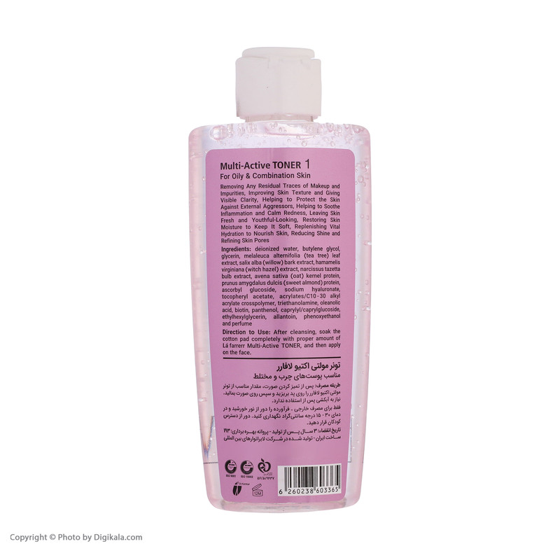 تونر پاک کننده صورت لافارر مدل مولتی اکتیو مناسب پوست های چرب و مختلط حجم 170 میلی لیتر