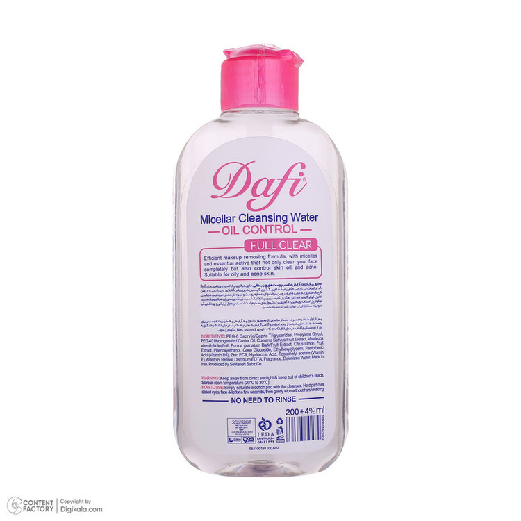 میسلار واتر دافی پوست چرب، متعادلکننده ترشح چربی پوست حاوی هیالورونیک اسید و رطوبترسانی عمیق به پوست دارای روغن درخت چای، ضدباکتری و ضد عفونیکننده پوست