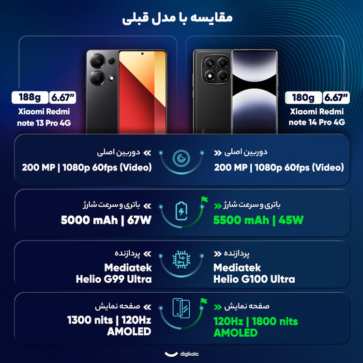 گوشی شیائومی Redmi Note 14 Pro 4G رجیستر شده دو سیم کارت 256 گیگابایت با رم 8 گیگابایت - به همراه سه عدد قاب