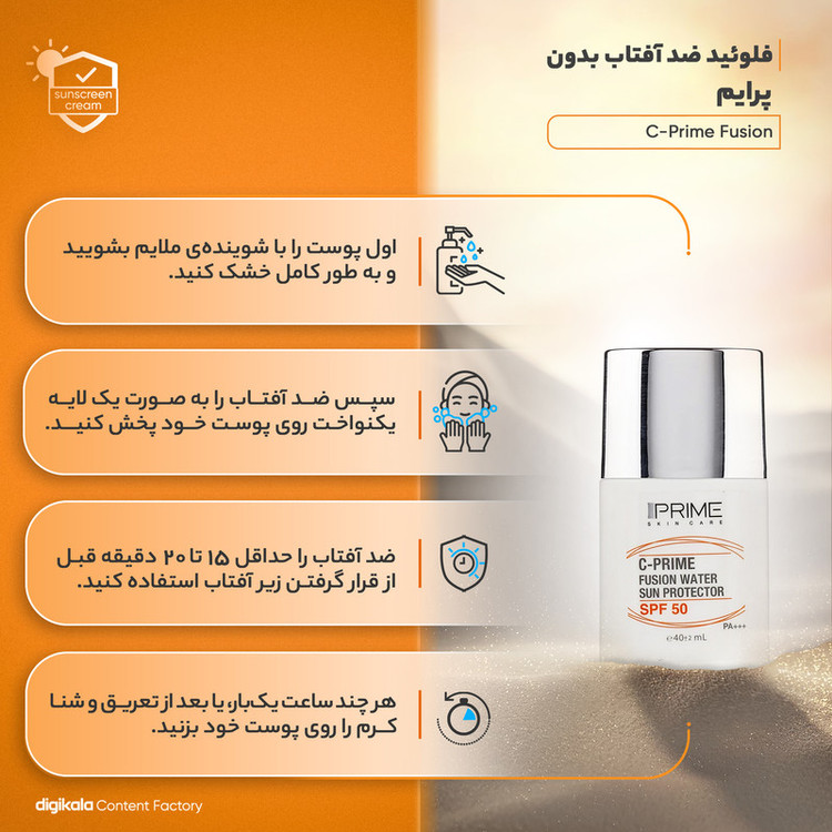 صورت و پشت دست ها را با مقدار کافی از محصول بپوشانید و هر 4 ساعت یک بار تمدید کنید.