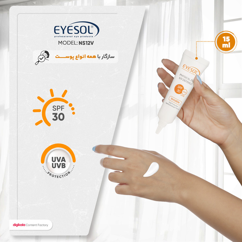 ضد آفتاب دور چشم آیسول دارای خاصیت آنتی اکسیدان/ فاقد اسانس و مواد حساسیت زا