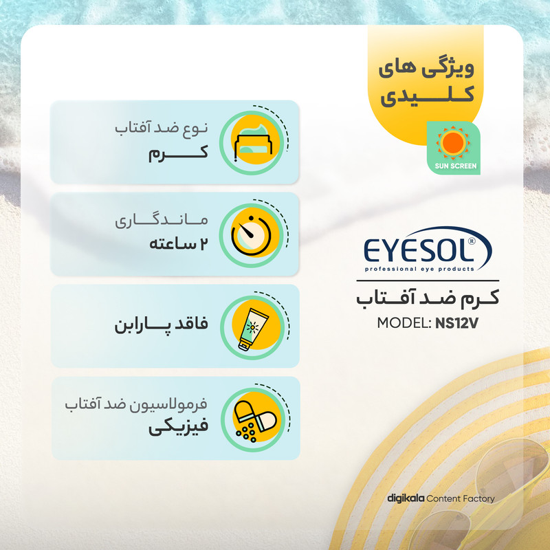 ضد آفتاب دور چشم آیسول دارای خاصیت آنتی اکسیدان/ فاقد اسانس و مواد حساسیت زا