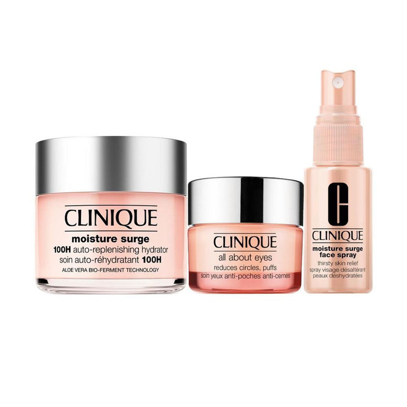 ست مرطوب کننده و ضد چروک کلینیک شامل یک کرم ضد چروک و مرطوب کننده ی 100 ساعته با حجم 125 میلی لیتر، یک کرم دور چشم مدل all about eyes با حجم 15 میلی لیتر و یک اسپری آبرسان صورت با حجم 30 میلی لیتر است. این ست، مراقبت کامل از پوست خشک و در معرض پیری است.