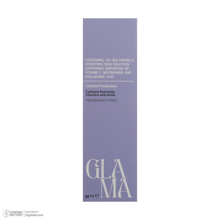 سرم روشن کننده پوست گلاما مدل ویتامین سی و نیاسینامید مناسب برای انواع پوست حجم 30 میلی لیتر
