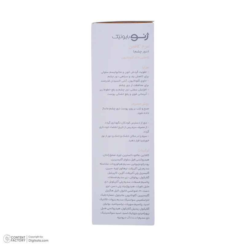 سرم دور چشم ژنوبایوتیک مدل کافئین مناسب برای انواع پوست حجم 30 میلی لیتر