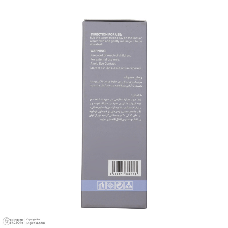 این محصول تنها برای استعمال خارجی است و از بهکار بردن آن روی پوست تحریکشده یا زخمی خودداری کنید. در صورت بروز قرمزی یا سوزش، مصرف را متوقف کرده و با پزشک مشورت کنید.