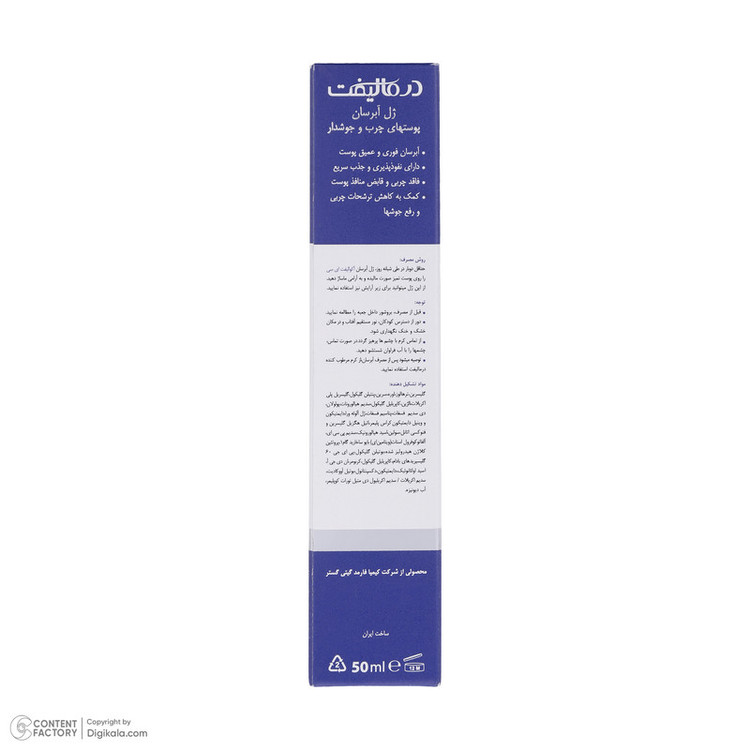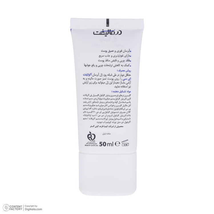 ژل آبرسان صورت درمالیفت مدل AQUALIFT AC مناسب برای پوستهای چرب و جوشدار حجم 50 میلی لیتر