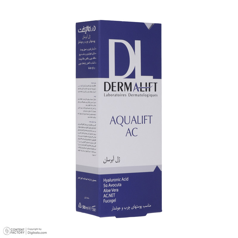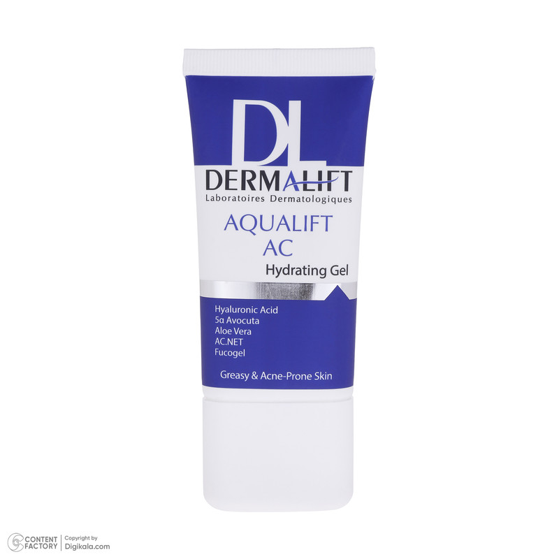 ژل آبرسان صورت درمالیفت مدل AQUALIFT AC مناسب برای پوستهای چرب و جوشدار حجم 50 میلی لیتر