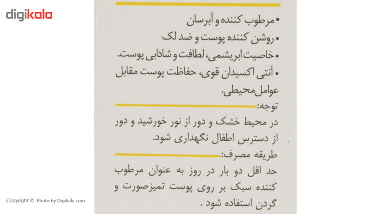 - روشن کننده و مرطوب کننده - مرطوب کننده و آبرسان - روشن کننده پوست ضد لک - خاصیت ابریشمی ، لطافت و شادابی پوست - آنتی اکسیدان قوی ، حفاظت پوست مقابل عوامل محیطی