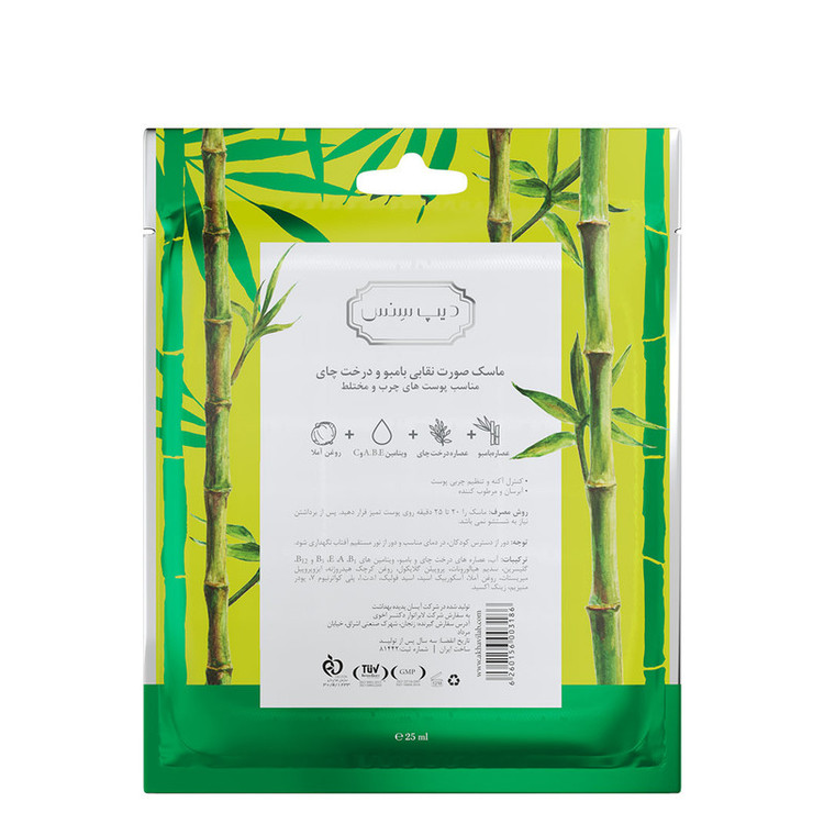 ماسک صورت دیپ سنس مدل بامبو و درخت چای مناسب پوست چرب و مختلط حجم 25 میلی لیتر