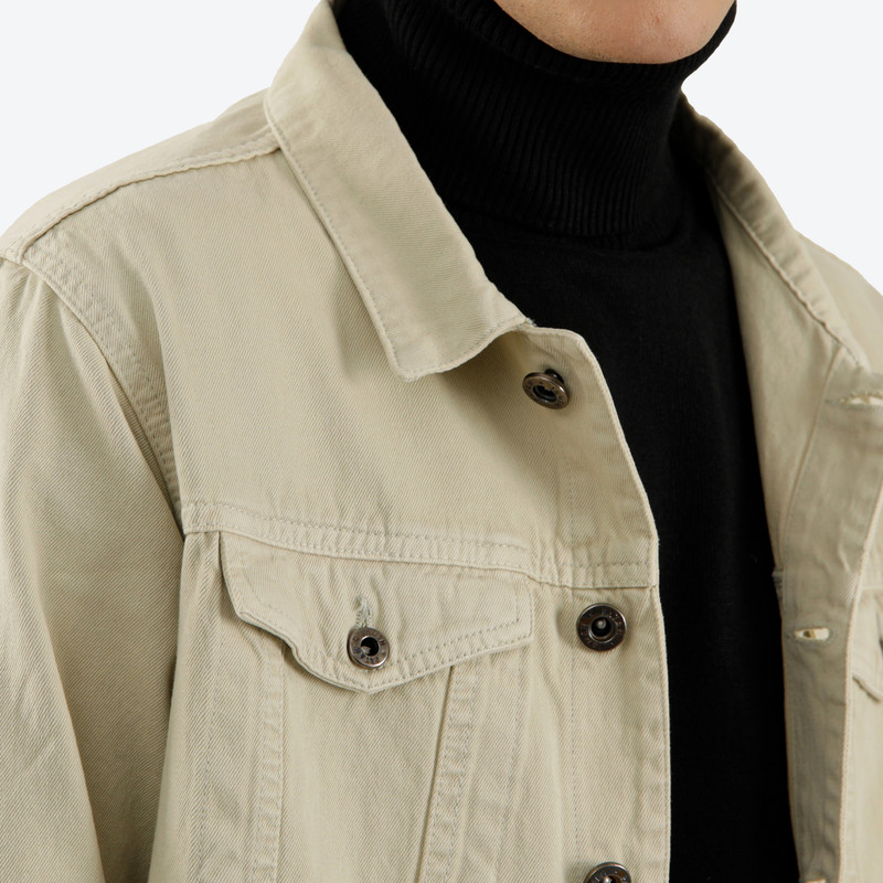 کت - کاپشن پاییزه طرح لی وایزی / صد در صد کتان با ضخامت متوسط مناسب فصل پاییز / رنگ کرم