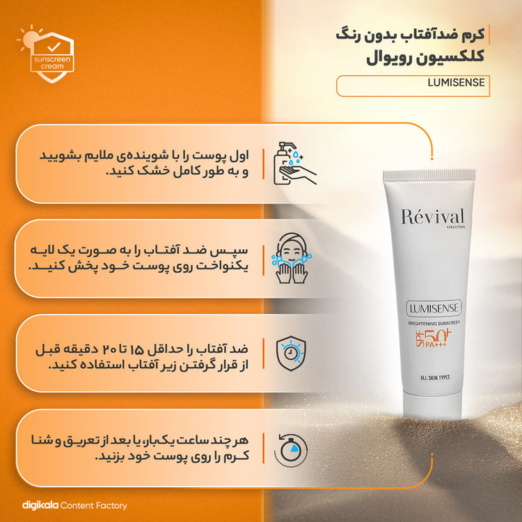 راهنمای استفاده : 15 دقیقه پیش از قرار گرفتن در معرض نور خورشید مقدار کافی از ضد آفتاب را روی پوست تمیز و خشک استفاده کرده و هر 2 ساعت یک بار تجدید نمایید.