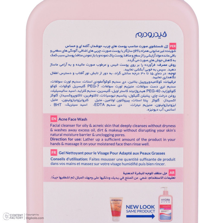 ژل شست‌وشوی صورت هیدرودرم مدل Acne مناسب پوست‌های چرب حجم 350 میلی‌لیتر