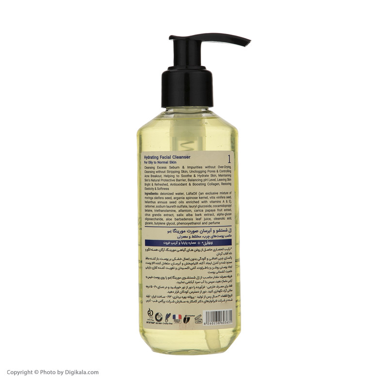 ژل شستوشوی صورت مورینگا امو مدل 01 مناسب برای پوست چرب حجم 200 میلیلیتر