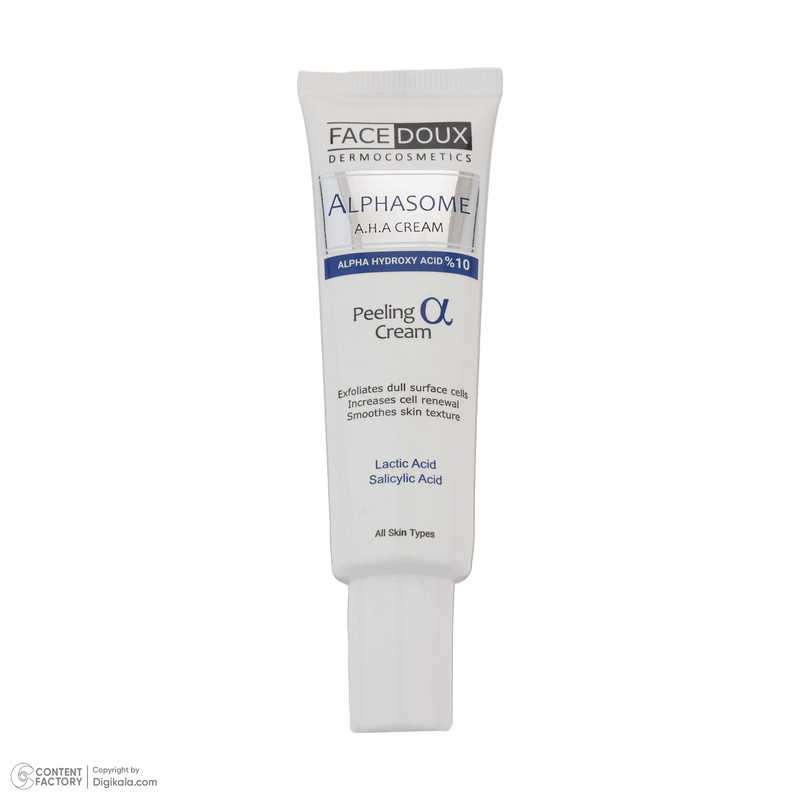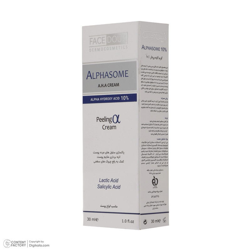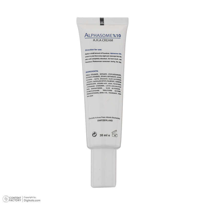 مناسب رفع جای جوش کاهش چروک سطحی احیا کننده پوست ضد لک و شفاف کننده پوست از بین برنده سلولهای مرده حاوی 10 درصد آلفازوم ایجاد حس لطافت کلاژن ساز مناسب پوستهای آکنه ای با منافذ بسته تحت لیسانس میبل سوئیس