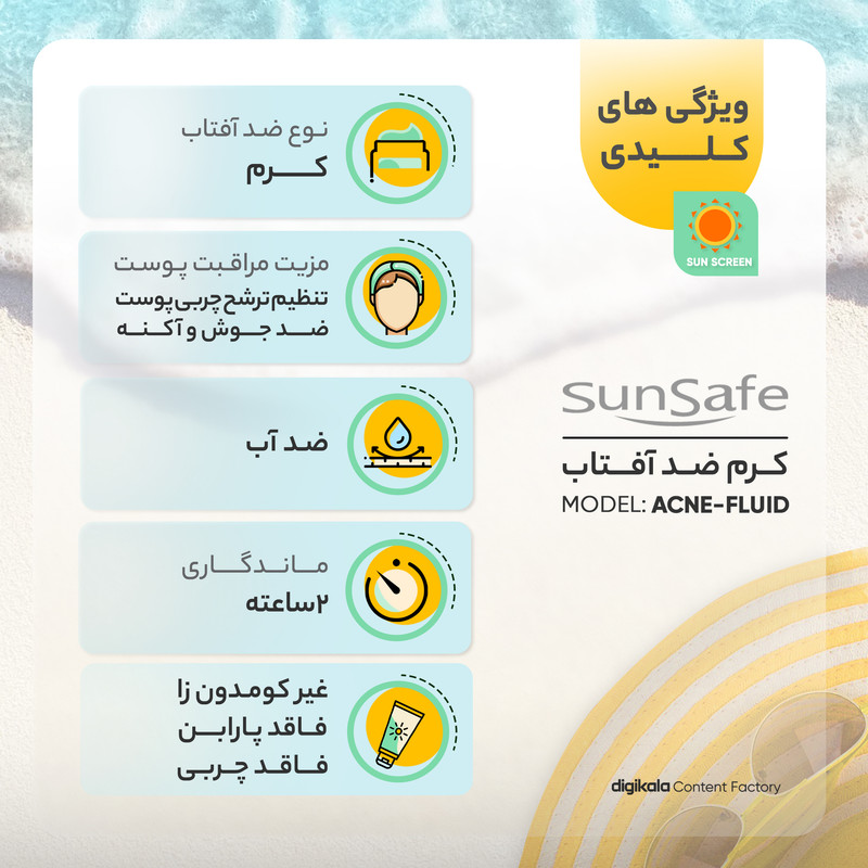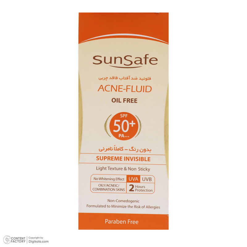 ضد آب , محافظت کننده در برابر اشعه UVA , محافظت کننده در برابر اشعه UVB , ضد حساسیت , غیر کومدون زا , فاقد پارابن