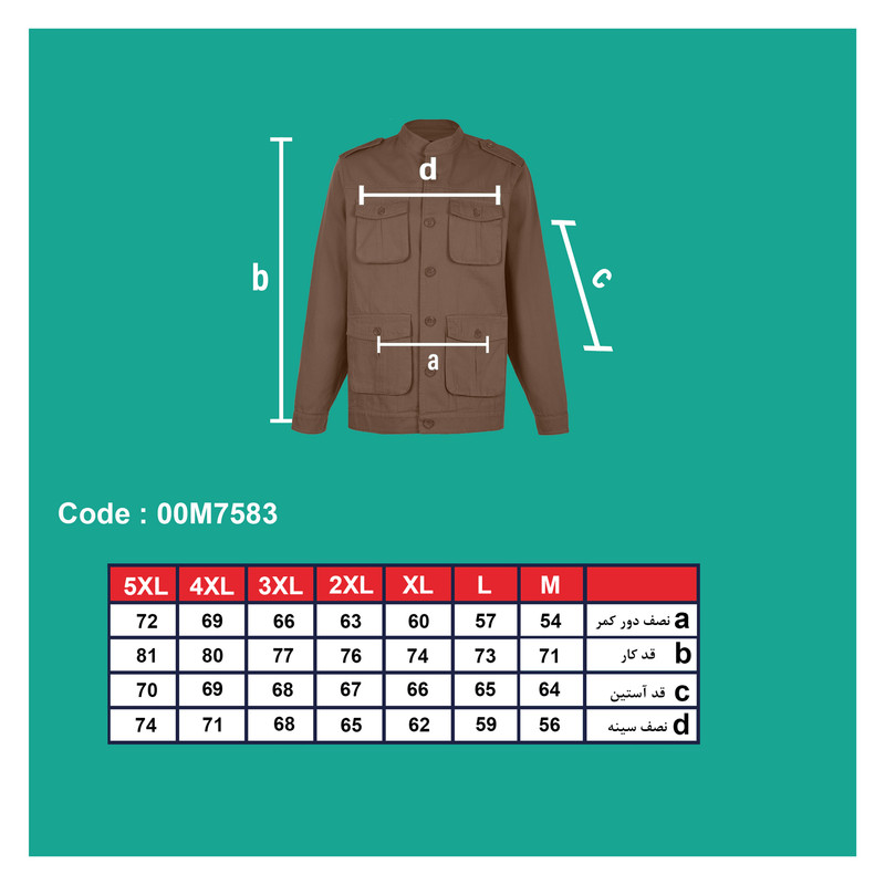 دارای چهار جیب / دکمه دار / جهت اطلاع از اندازه دقیق کالا لطفاً به آخرین عکس آلبوم دقت فرمایید.