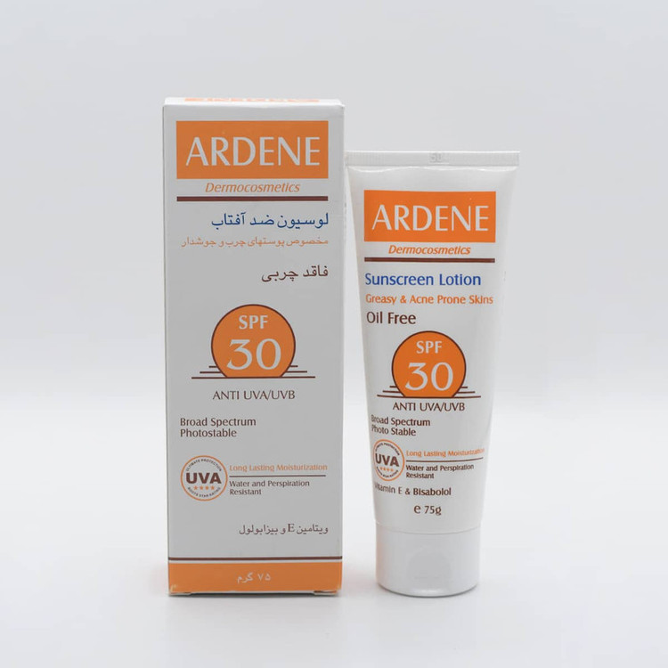 لوسیون ضد آفتاب بی‌رنگ صورت آردن SPF 30 مدل Vitamin E ‌مناسب برای پوست چرب حجم 70 میلی‌لیتر
