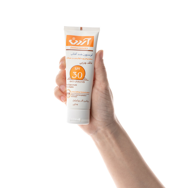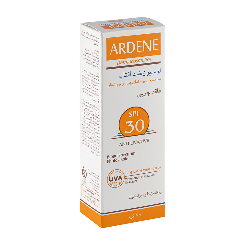 لوسیون ضد آفتاب بی‌رنگ صورت آردن SPF 30 مدل Vitamin E ‌مناسب برای پوست چرب حجم 70 میلی‌لیتر