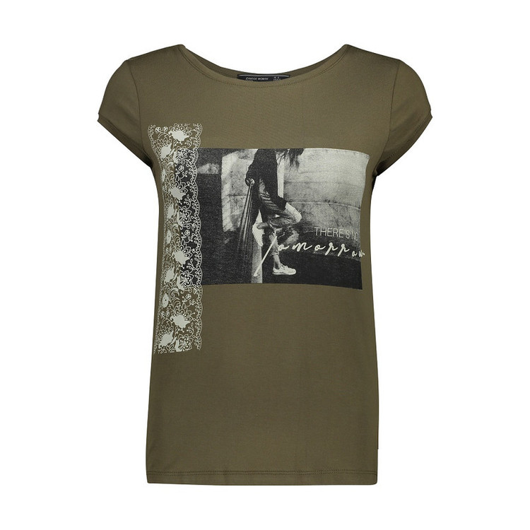 - تی شرت زنانه یقه گرد - دارای فرم معمولی و طرح چاپی روی تی شرت - مناسب برای استفاده روزمره