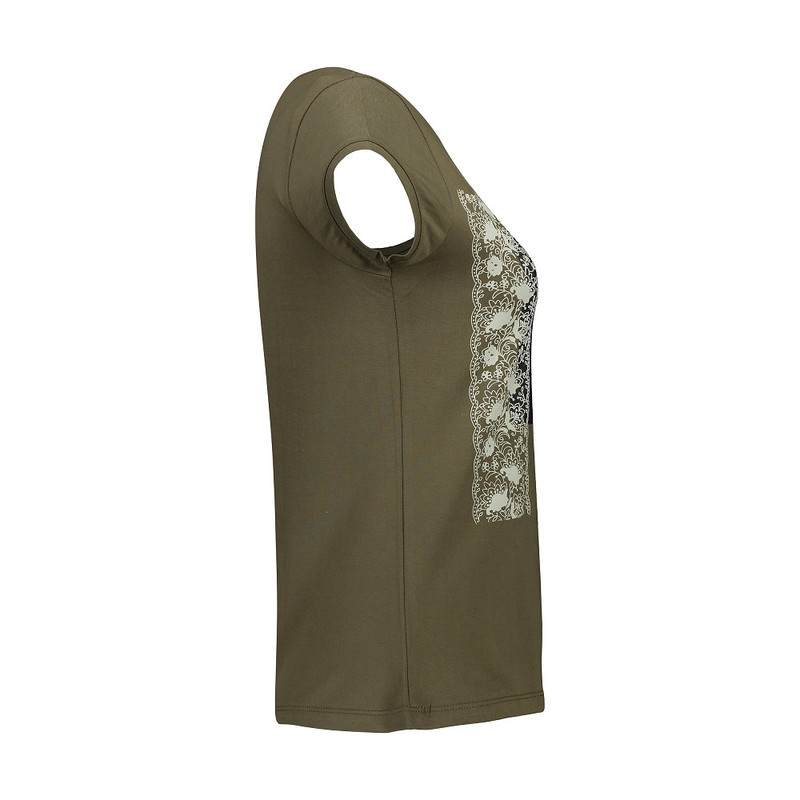 - تی شرت زنانه یقه گرد - دارای فرم معمولی و طرح چاپی روی تی شرت - مناسب برای استفاده روزمره