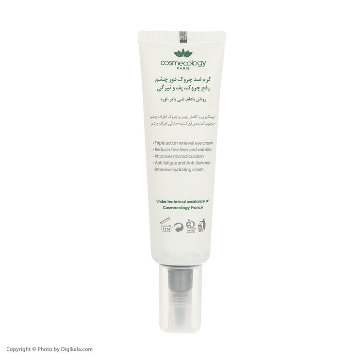 حاوی روغن بادام، شی باتر و اوره رفع چروک، پف و تیرگی پیشگیری و کاهش چین و چروک اطراف چشم مرطوب کننده و رفع کننده خشکی اطراف چشم