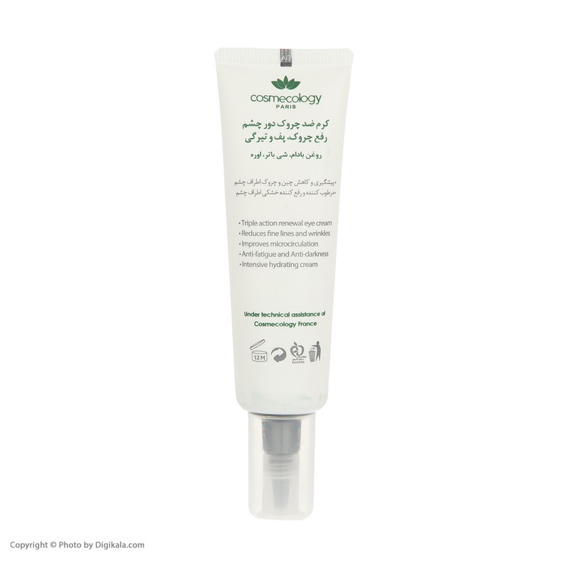 حاوی روغن بادام، شی باتر و اوره رفع چروک، پف و تیرگی پیشگیری و کاهش چین و چروک اطراف چشم مرطوب کننده و رفع کننده خشکی اطراف چشم