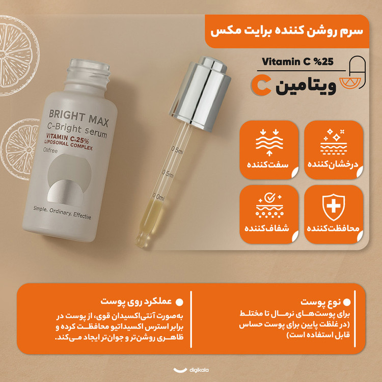 سرم روشن‌کننده برایت مکس مدل جوان کننده مناسب برای پوست‌های انواع پوست حجم 30 میلی‌لیتر