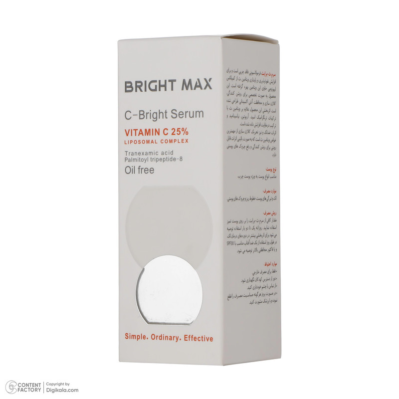 سرم روشن‌کننده برایت مکس مدل جوان کننده مناسب برای پوست‌های انواع پوست حجم 30 میلی‌لیتر