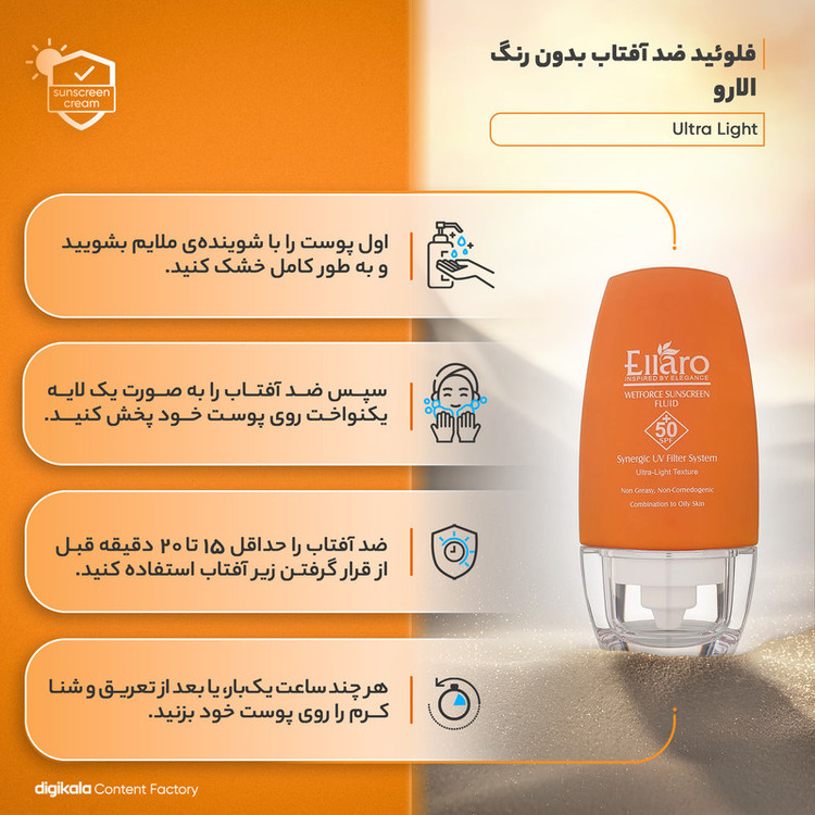 محافظت کننده در برابر اشعه UVA , محافظت کننده در برابر اشعه UVB , غیر کومدون زا , مرطوب کننده , ضد آب
