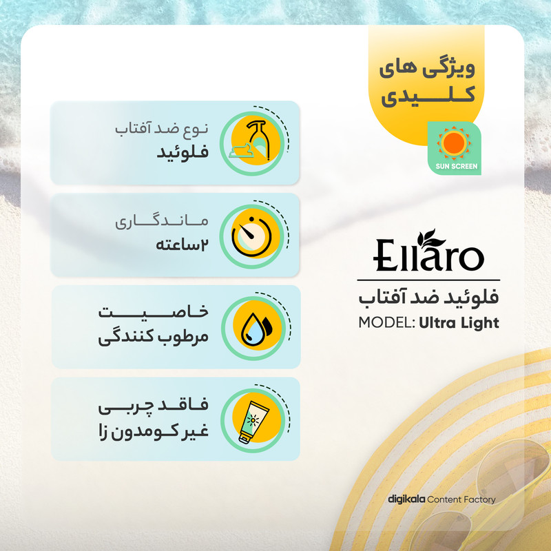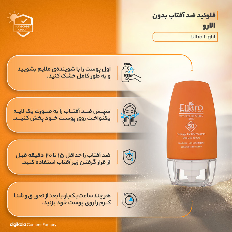 محافظت کننده در برابر اشعه UVA , محافظت کننده در برابر اشعه UVB , غیر کومدون زا , مرطوب کننده , ضد آب