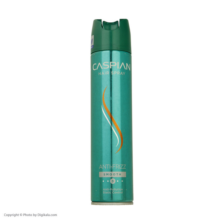 اسپری حالت دهنده و ضد وز مو کاسپین حجم 250 میلی لیتری با ویژگی درخشان کننده، تثبیت کننده و صاف کننده مو با قدرت نگهداری حالت مو سطح 3