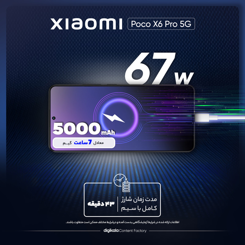 گوشی موبایل شیائومی مدل Poco X6 Pro 5G دو سیم کارت ظرفیت 512 گیگابایت و رم 12 گیگابایت