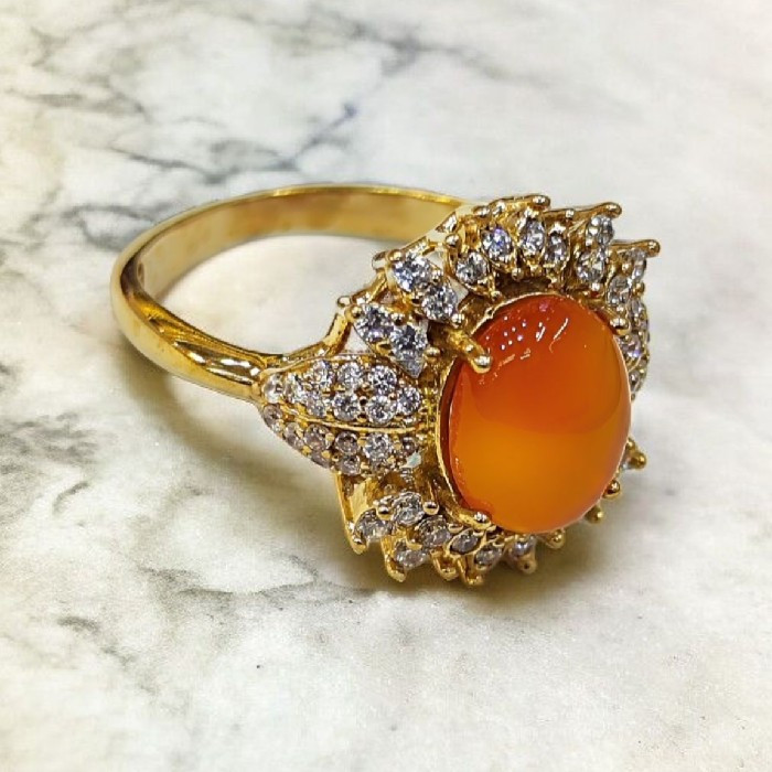 جنس انگشتر طلا روس میباشد و قابل سایز شدن در طلاسازی های کشور است سنگ عقیق یمنی