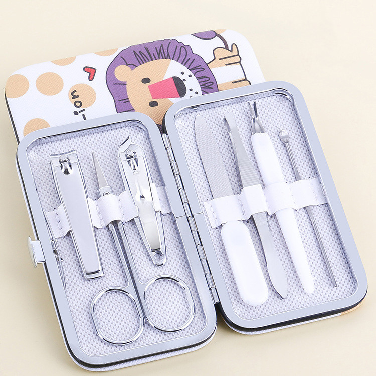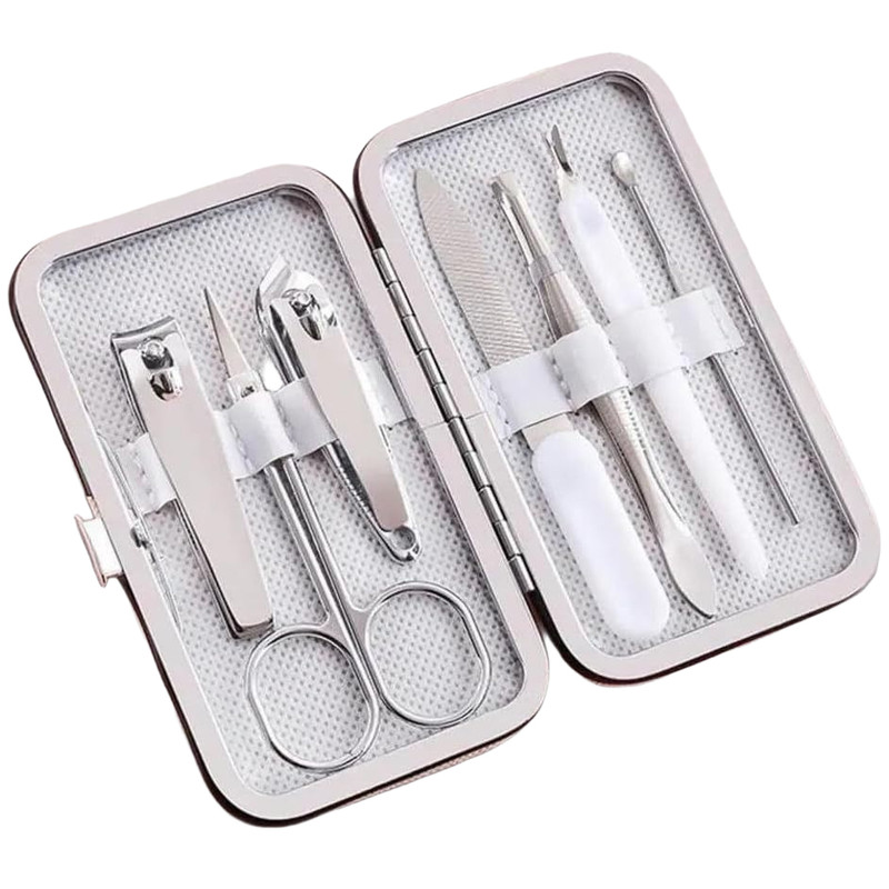 دارای کیف فانتزی بسیار جذاب - ابزارها از جنس استیل ضد زنگ با دوام عالی - شامل 7 قلم ابزار کاربری ناخنگیر، گوشهگیر، قیچی، ابزار تمیز کردن زیر ناخن، سوهان ناخن، موچین، عقبدهنده ناخن