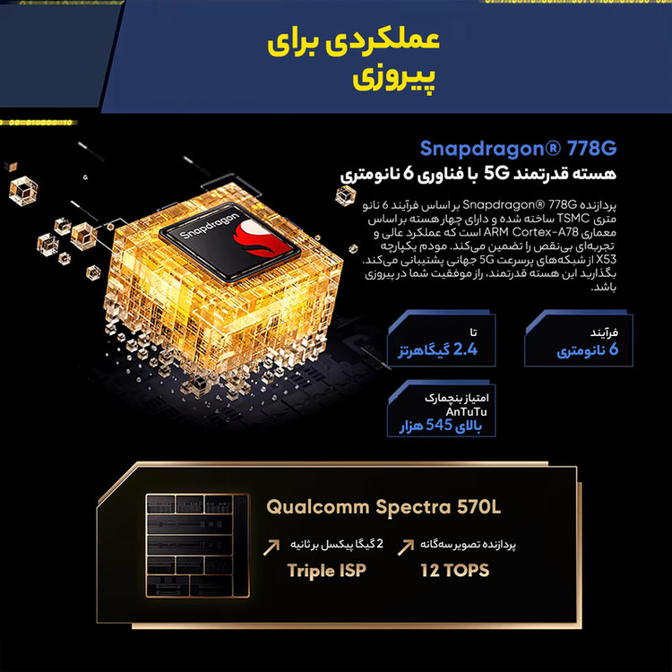 صفحهنمایش با نرخ بروزرسانی 120 هرتز / صفحهنمایش با حداکثر روشنایی 900 نیت (nits) / سنسور دوربین عریض قدرتمند